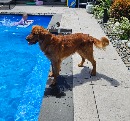 He is a proven Golden Retriever stud, consistently producing beautiful, well tempered puppies with dark golden colouring and confident, people focused natures. His offspring are well balanced and suited to family homes.